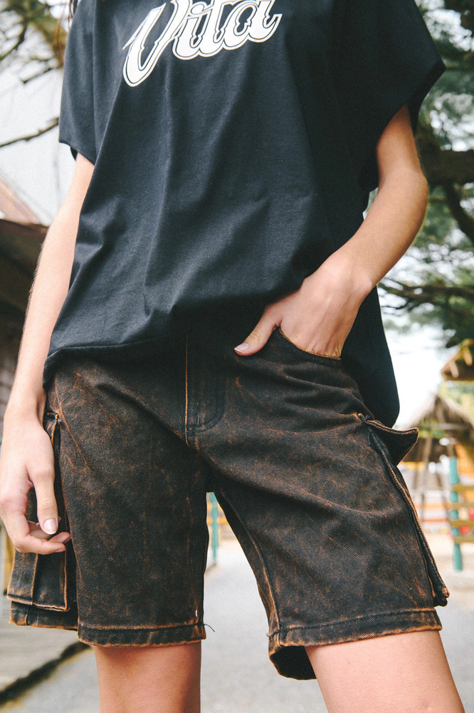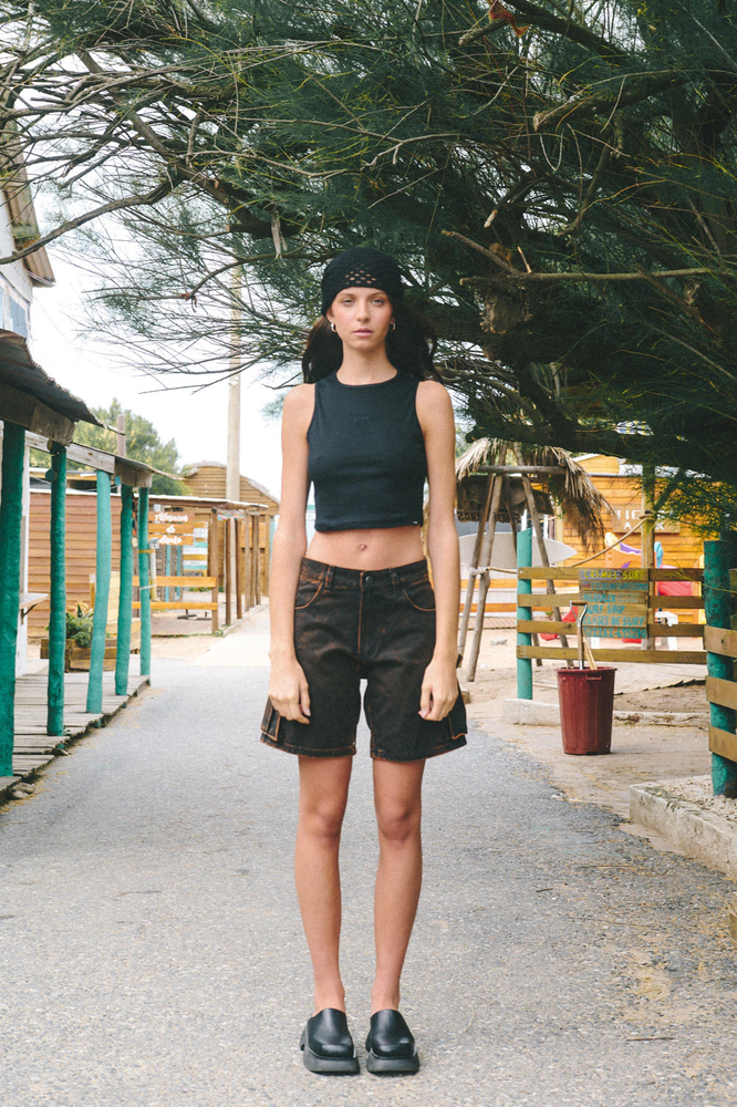 Confeccionado de gabardina rígida color negro con lavado ácido, 100% Algodón