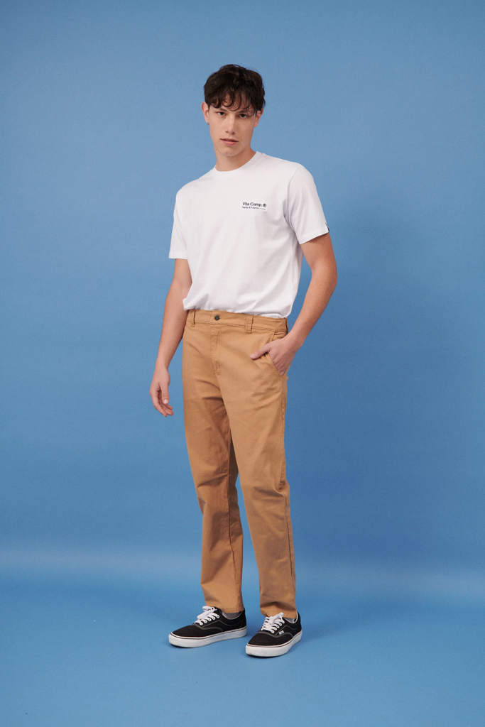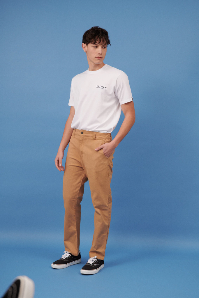 Gabardina con lycra. 98% Algodón 2% Elastano. Bolsillos delanteros. Bolsillos traseros en ojal. Botón personalizado. Grifa interna de marca. Corte Regular-fit. Todas nuestras prendas están sometidas a un pre-lavado para encogimiento.