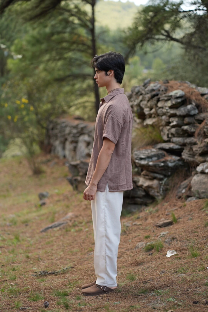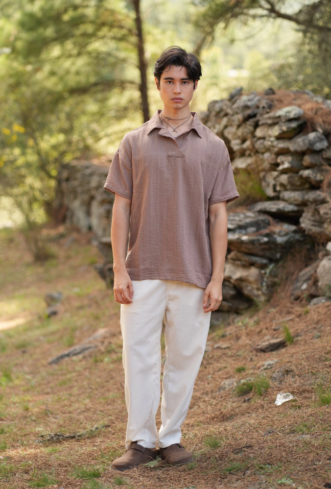 Corte oversize. Hombros caídos y mangas anchas. Tajo en ambos laterales. Confeccionada en lino dobby. Bordado de marca a tono.