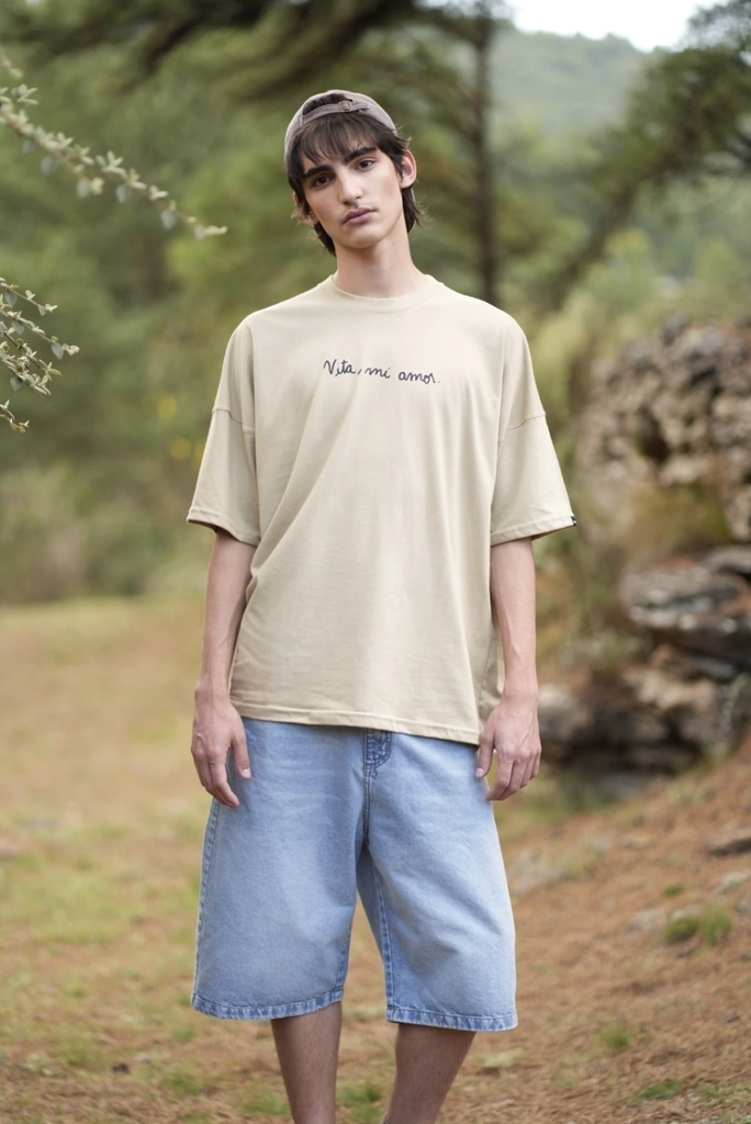 Corte oversize. Hombros caídos y mangas anchas. Cuello redondo. Confeccionada en jersey 24/1. Algodón 80%, poliéster 20%. Estampada en serigrafía.