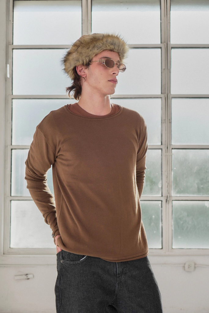 Corte regular. Cuello redondo al corte. Mangas largas.