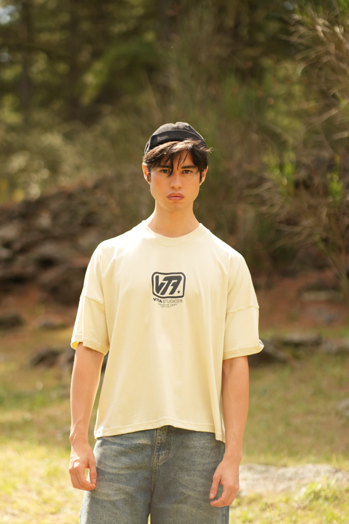 Corte recto y holgado que caen en forma cuadrada sobre el cuerpo. Mangas anchas. Cuello redondo. Confeccionada en jersey 24/1. 80% algodón 20% poliéster. Estampada en serigrafía.