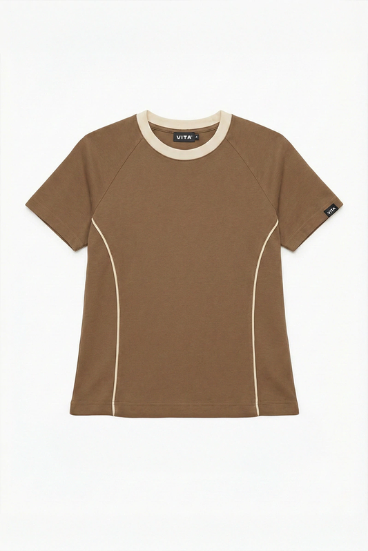 Regular con cuello redondo a contratono, mangas ranglan, con vivos a contratono. Confeccionada en jersey 24/1. Algodón 80% poliéster 20%.