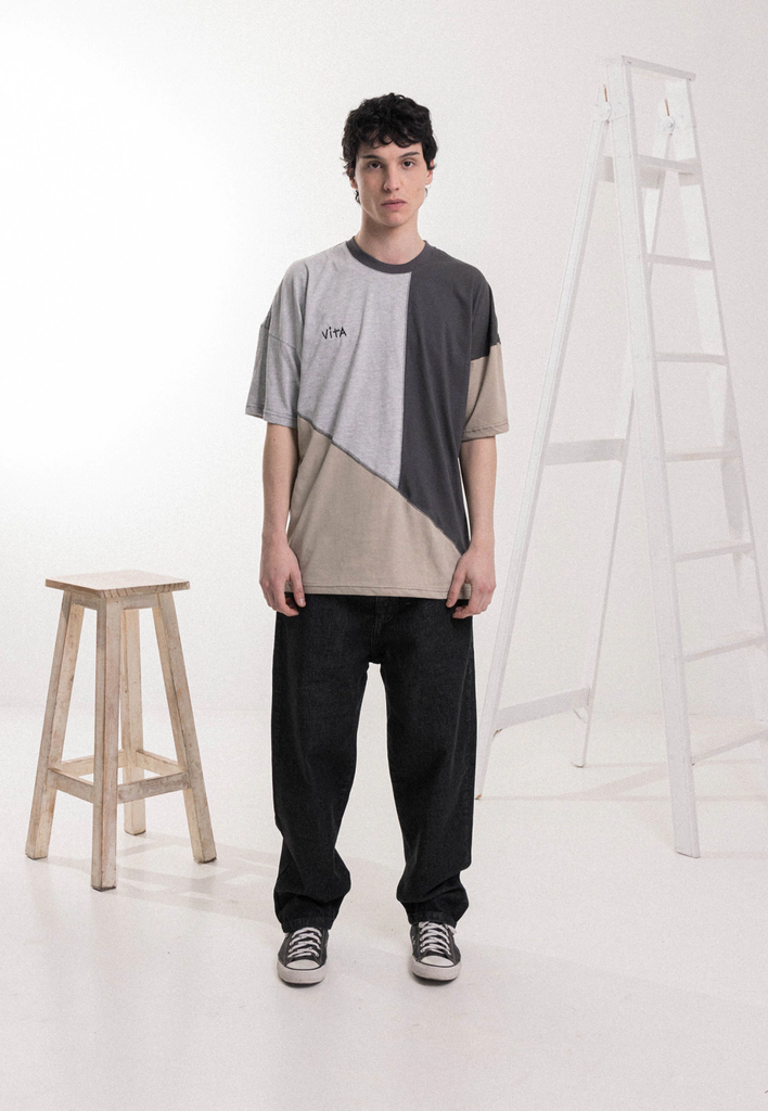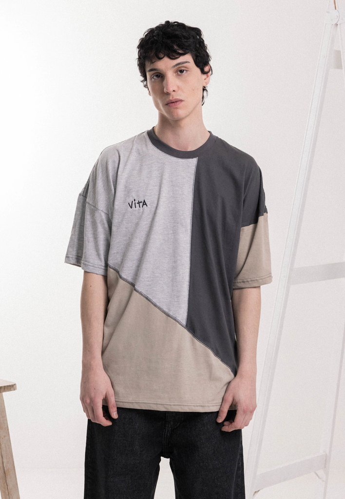 Confeccionada en jersey 24/1, color gris melange, arena y gris oscuro. Algodón 50% poliéster 50%.