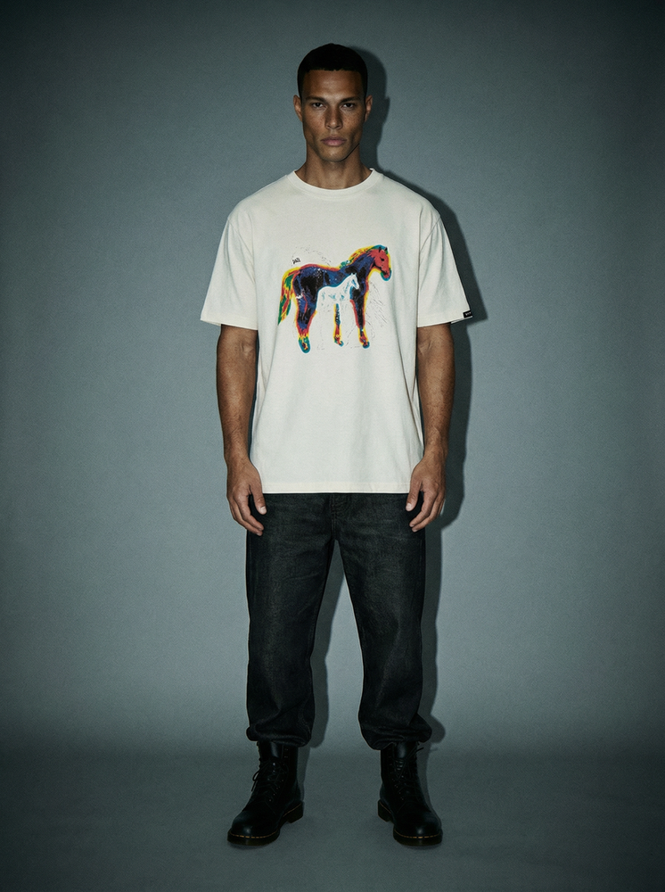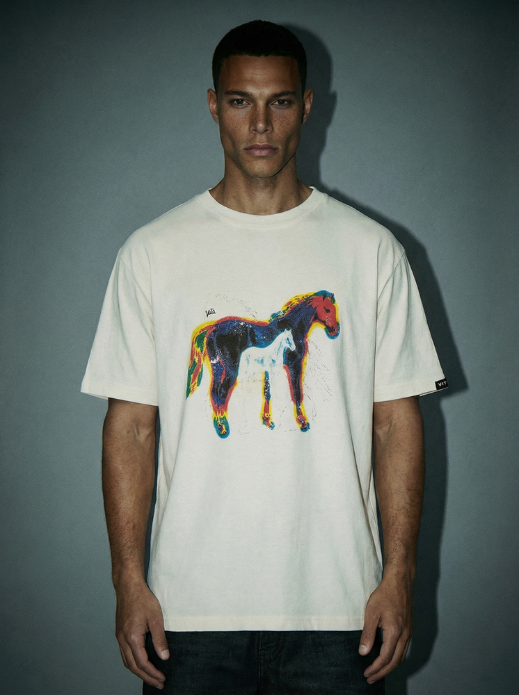 Corte regular/clásico (no oversized). Cuello redondo. Confeccionada en jersey 24/1. 80% algodón, 20% poliéster . Estampada en serigrafía.